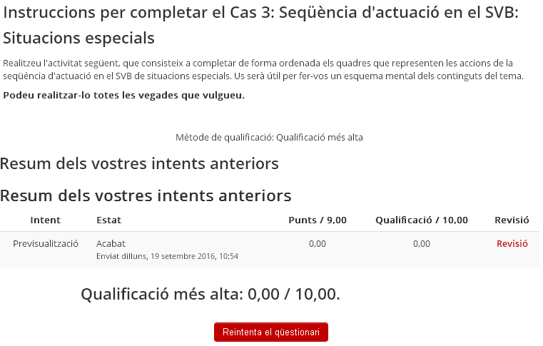 Un cop feta la comprovació de les vostres opcions dins el qüestionari, és hora de lliurar-lo. Aquesta acció es pot repetir en múltiples ocasions de les quals es conservarà la puntuació més alta, sempre depenent de la configuració predeterminada. Recordeu que aquesta acció pot disposar de data de caducitat especificada al mateix qüestionari.