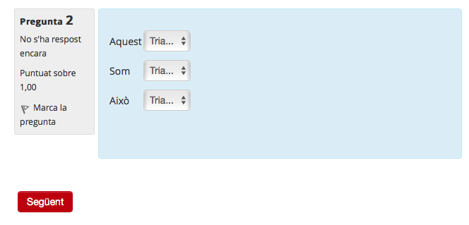 Tot tenint el qüestionari obert amb algunes de les preguntes emplenades, feu clic a la pastilla 'Següent'.
