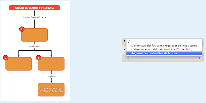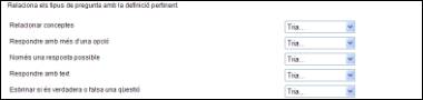 - Per aquest motiu cal triar les alternatives, afegir informació textual o relacionar els diferents conceptes segons convingui. A les preguntes opcionals, trieu la o les possibilitats correctes.