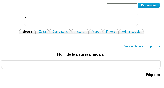 - La pestanya Administració (només disponible pel professorat) permet eliminar les versions associades a una pàgina o, fins i tot, la pròpia pàgina.