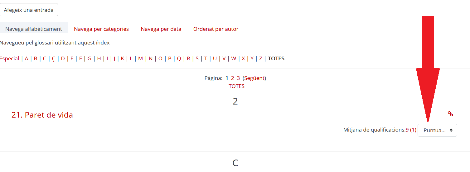 Per puntuar les entrades al glossari, heu de clicar al glossari que us interessi i puntuar les aportacions: